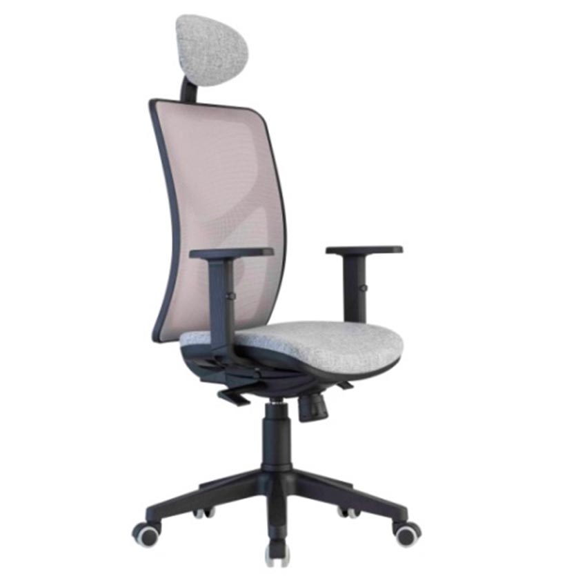 Respaldo fijo con apoyo lumbar regulable en altura.
